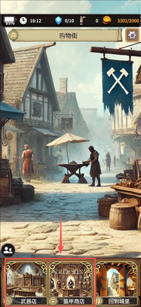 8、查看完毕后离开酒馆,前往购物街为冒险者购买装备
